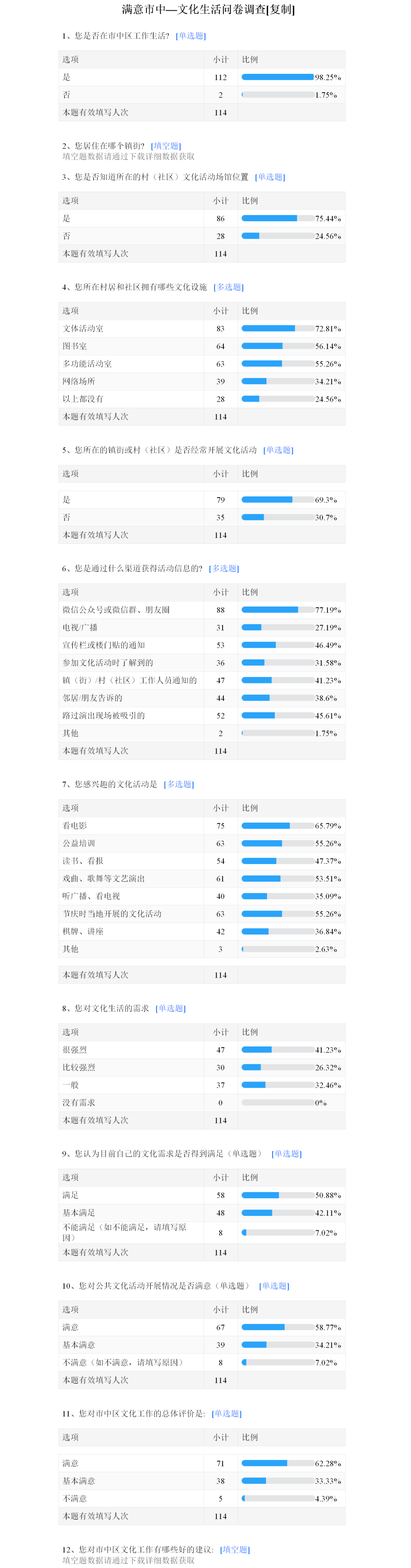 【结果反馈】满意市中--文化生活问卷调查结果反馈