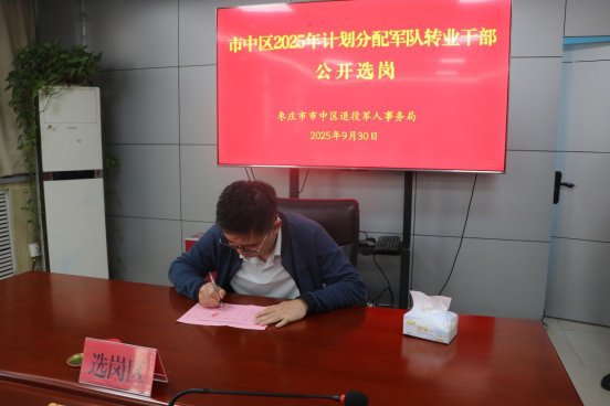 近日,枣庄市市中区2025年度转业军官公开选岗会议在市中区退役军人事务局四楼会议室举行,3名转业军官全部选到了满意的工作岗位。市中区委组织部、市中区委编办、市中区退役军人事务局等相关部门负责同志全程参加了公开选岗活动。