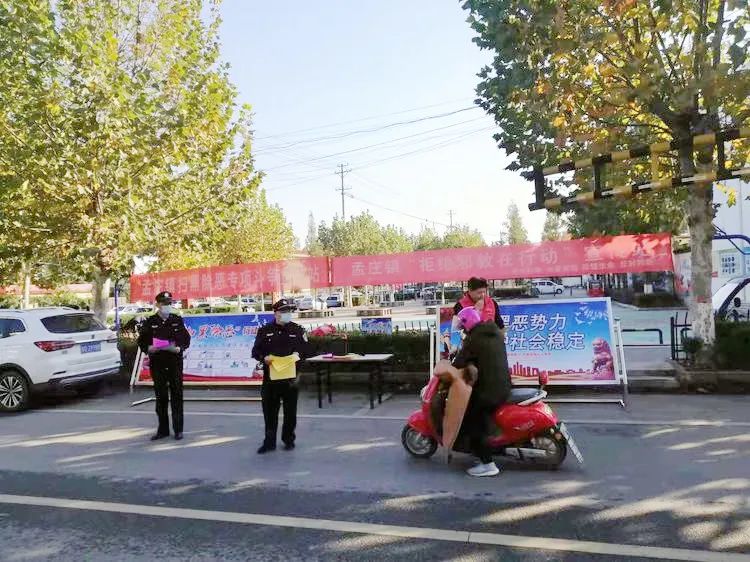 (二)坚持“扫黑除恶、除恶务尽”方针,积极开展扫黑除恶专项斗争行动。孟庄镇根据市、区委政法委关于开展扫黑除恶工作的统一部署,通过发放宣传资料、村村响等方式大力宣传扫黑除恶,提升群众知晓率,为确保专项行动打出声威,打出实效,努力营造扫黑除恶的良好氛围。各村继续发挥大喇叭作用,利用广播喇叭在每天早、中、晚三个时间段进行集中播放宣传扫黑除恶通告,每天坚持播放广播喇叭不少于3个小时。动员群众积极检举揭发,提供高质量的黑恶犯罪线索。完善组织架构、运行机制及事项台账,确保各种机制流转顺畅,部门之间协调配合,共同打击黑恶势力,提升人民群众安全感、满意度。